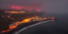 بالصور.. حمم بركان لا بالما تتدفق نحو البحر