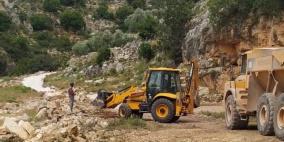 مستوطنون يشقون طريقا استيطانيا في بلدة قراوة بني حسان شمال غرب سلفيت