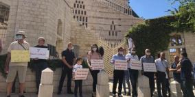 وقفة احتجاجية ضد صفقات بيع أراضي الوقف أمام كنيسة البشارة بالناصرة