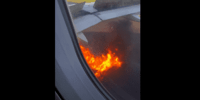 فيديو مرعب.. النار تلتهم محرك طائرة على متنها 109 أشخاص
